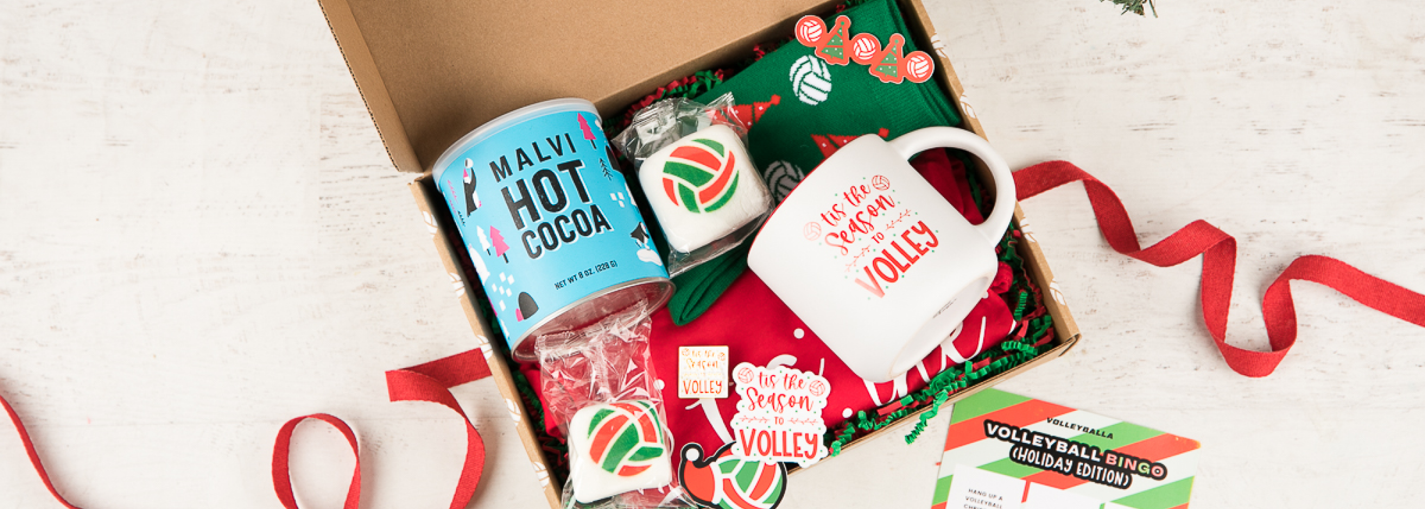 Volleyballa Box is a monthly volleyball t-shirt club delivered right to your door! Each box comes with 1 high-quality t-shirt, 1 limited edition enamel pin, 2 die-cut vinyl stickers, and a motivational insert — all curated to a fun volleyball theme.